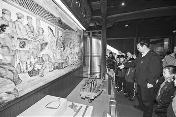 图为一位纪检干部在高虹新四军纪念馆给高虹小学学生和家长介绍新四军在天目山地区抗战的历史。日前,浙江省杭州市临安区高虹镇举行“传承红色基因 弘扬清廉家风”亲子朗诵比赛及参观活动。近年来,该镇积极组织青少年到新四军红色文化体验馆开展“红色文化研学”“传承非遗”等亲子体验活动,传承红色经典,弘扬清廉家风。新华社记者 徐昱 摄