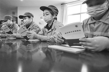 12月15日,张家港市锦丰镇一家企业的员工在学习防疫知识。