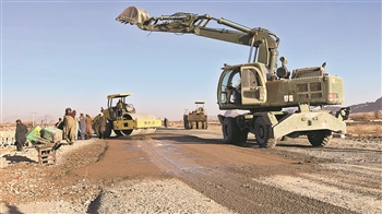 12月12日,工人们在阿富汗坎大哈省扎里地区施工。近日,阿富汗南部坎大哈省官方开始重建在过去20年战争中被破坏的桥梁和道路。新华社发(阿尔甘德 摄)