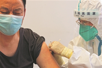 11月2日,北京市西城区新街口街道新冠疫苗加强针接种点,医护人员在为市民进行新冠疫苗加强针接种。