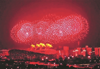 6月28日晚,庆祝中国共产党成立100周年文艺演出《伟大征程》在国家体育场(鸟巢)盛大举行,焰火在鸟巢上空打出五星图案。