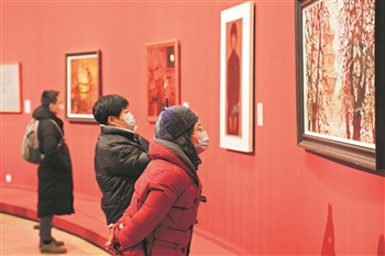 图为观众在中国美术馆内参观漆画展品。本报记者 王伟伟 摄