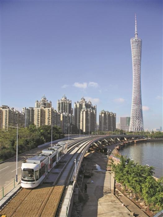 广州首条新型有轨电车海珠区试验段建成通车。(付静 摄)