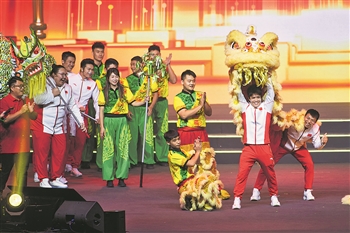 12月20日,内地奥运健儿代表团成员李发彬(右二)、谌利军(右一)在活动中。当日,内地奥运健儿代表团在澳门东亚运动会体育馆参加“我们的骄傲——国家奥运精英运动员澳门联欢会”活动,与澳门市民互动交流。新华社记者 张金加 摄