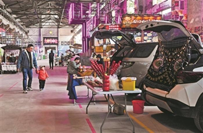 12月22日,游客在“九街有个单位”文创街区创意集市上游览。
