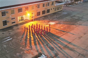 ③2月4日,霍尔果斯压气首站运维人员班前点名。新华社记者 丁磊 摄
