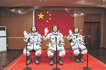 ④10月15日晚,神舟十三号载人飞行任务航天员乘组出征仪式举行。新华社记者 李刚 摄
