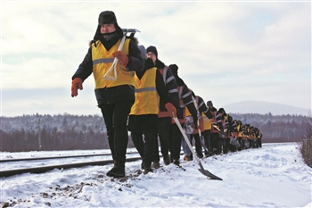 12月15日,零下20摄氏度,缓化工务段组织35名职工到线路上除雪。吴健 摄