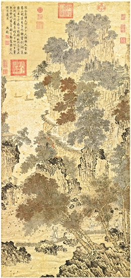 关仝现存作品有《关山行旅图》和《山溪待渡图》,此幅《蜀山栈道图》现藏于台湾“故宫博物院”。