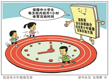 2021年12月30日记者从湖南省教育厅获悉,《湖南省深化体教融合 促进青少年健康发展实施方案》已经湖南省委全面深化改革委员会第十五次会议审议通过,方案明确将推进中考体育测试内容、方式和计分办法改革,着力保障中小学生每天校内、校外1小时体育活动时间。新华社发 朱慧卿 作