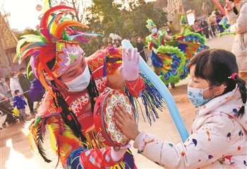 1月2日,小朋友在郑州银基动物王国景区参与游园互动。