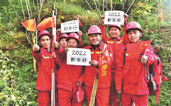 2022年元旦前夕,在川东开江—梁平海槽二维勘探项目工地上,中石油东方物探西南分公司民爆工程中心三队3X13班下药工们发出新年问候。邓建 马建渝 唐遂川 摄