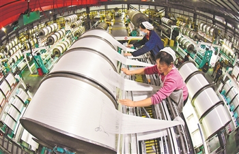 1月4日,工人们在江苏连云港高新区海州工业园一家毛毯公司的车间内忙碌。