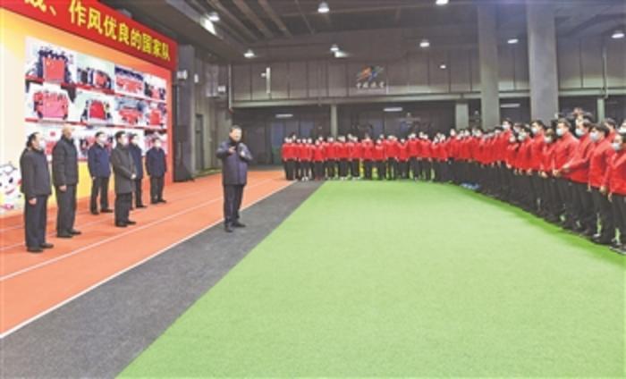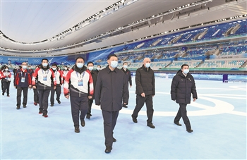 1月4日,习近平在中共中央政治局委员、北京市委书记蔡奇和市长陈吉宁陪同下,深入体育场馆、媒体中心、训练基地等,实地了解筹办备赛情况。