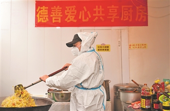 西安市本轮新冠肺炎疫情发生后,公益厨房创办人许凯在2021年12月27日将“抗癌厨房”改造为“战疫厨房”,招募志愿者制作爱心餐,不仅免费发放给一些滞留西安的外地癌症患者及家属,还配送给部分的防疫人员。 截至目前,已有30余名志愿者加入德善爱心共享厨房的义务送餐活动,送出爱心餐近万份。