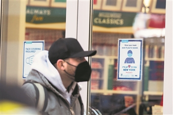 1月4日,行人从美国纽约一家贴着防疫标识的商店外走过。根据美国疾病控制和预防中心数据,在截至2022年1月1日的一周里,奥密克戎毒株感染病例在美国新增新冠病例中约占95.4%,德尔塔毒株感染病例约占4.6%。新华社记者 王迎 摄