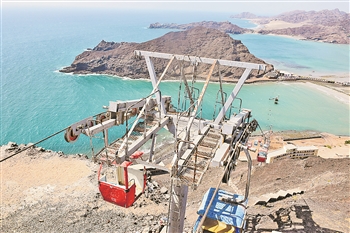 这是1月2日在也门亚丁一处海滨公园拍摄的废弃的空中缆车。