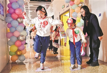 近日,在太原市新建路小学,二年级的学生在闯关答题,进行期末考试。