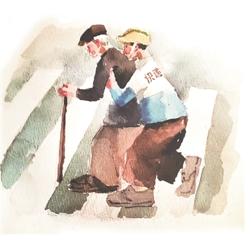 好吧,我们一起出去走走,出去看看。走着走着,我们看到很多快递小哥;走着走着,我们发现一位步履艰辛的爷爷。而在魏老先生眼里,走过一位老爷爷和搀扶他小心翼翼横过马路的快递小哥。