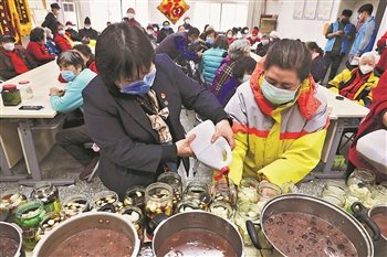 1月7日上午,北京市东城区九道湾社区活动室,居民们正在制作腊八蒜。当日, “同心向未来 社区共建设”冬奥文化宣传活动举办。腊八将近,居民们相聚制作腊八蒜、分发腊八粥、进行“冬奥项目大家猜”知识问答。本报记者 刘金梦 摄