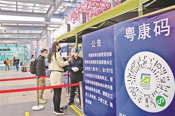 1月10日,在深圳火车站,离深旅客出示48小时内核酸阴性证明进站乘车。