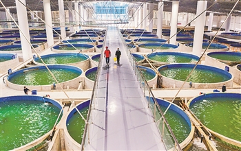 1月11日拍摄的中华鲟研究所三峡实验站珍稀鱼类养殖车间(无人机照片)。