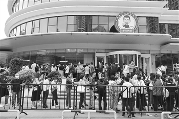 2021年10月,精锐教育上海总部门前等待退费的学员家长排起长队。东方IC供图