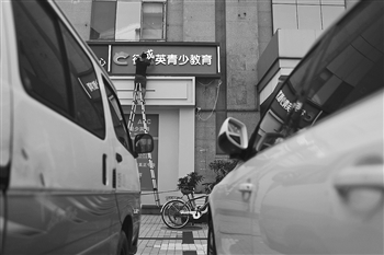 2021年9月11日,北京一家校外培训机构正在拆除招牌。本报记者 杨登峰 摄