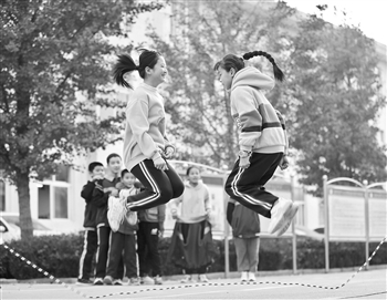 山东临沂,一所小学的学生在下午三点半后的“第二课堂”上跳绳。新华社发