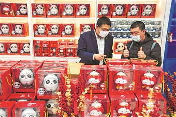 1月13日,北京王府井工美大厦,消费者在选购北京冬奥会特许商品。日前,北京冬奥会特许商品年货节开幕,将持续到2月底。本报记者 王伟伟 摄