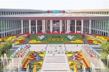 图为国家会展中心(上海)南广场。第四届中国国际进口博览会2021年11月5日至10日在国家会展中心(上海)举行。新华社记者 邬惠我 摄
