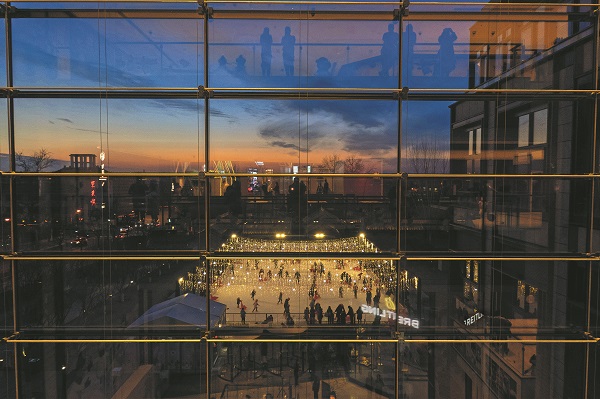 1月8日,北京王府井一处冰乐园内,市民们在冰场上滑冰。