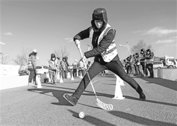 1月15日,在北京中建二局安装公司北京冬奥会延庆赛区“海陀塔”项目现场,“助力冬奥会,一起向未来”趣味运动进工地暨新春慰问活动火热举行。 新华社记者 才扬 摄