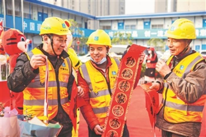 当日,中建三局在项目部工地现场举办“新春暖心集市”活动,让在工地坚守的建设者们感受到新春的温馨氛围。伍志尊 摄 (新华社发)