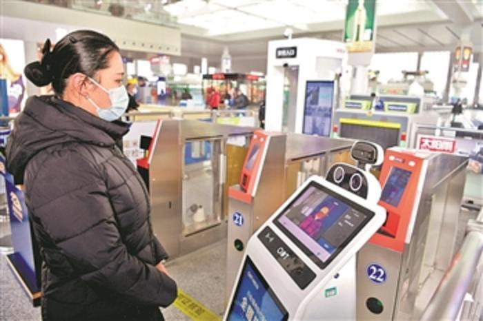 1月18日,智能防疫测温机器人在合肥南站进站口为旅客测温。2022年春运期间,安徽合肥南站运用智能科技手段服务春运疫情防控。新华社记者 刘军喜 摄