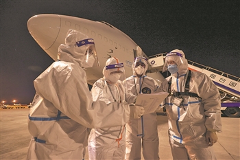 1月17日,边检人员在停机坪现场核对韩国入境货机相关信息。