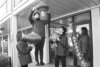 1月17日,中建一局二公司北京城市副中心160项目员工挂红灯笼、贴春联、挂福字,欢欢喜喜迎春节。春节临近,该项目通过多种形式慰问留京过年的员工,让他们在北京安心过年。 (李玉明 孙婉婷)