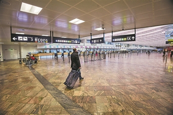 1月18日,奥地利维也纳国际机场内客流稀少。维也纳国际机场日前发布的数据显示,2021年该机场客运量为1040万人次,虽然比2020年增长三分之一,但较疫情前的2019年下降67.1%。新华社发(乔治斯·施耐德 摄)