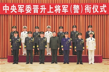 晋衔仪式在嘹亮的军歌声中结束。随后,习近平等领导同志同晋升上将军衔警衔的军官警官合影。