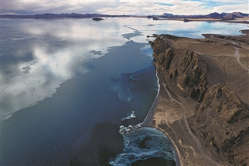 冬日,西藏纳木错水天一色、风光怡人。图为近日拍摄的纳木错(无人机照片)。新华社记者 孙瑞博 摄