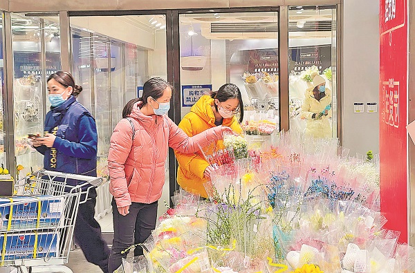1月23日,北京的一家花店内,消费者正在选购鲜花。随着春节临近,花卉市场迎来销售旺季。本报记者 王伟伟 摄
