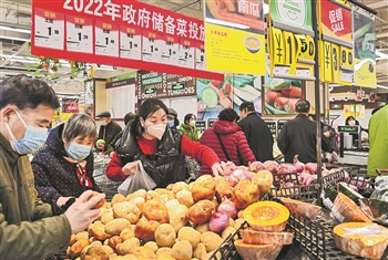 在一个储备菜投放点,白菜、土豆、卷心菜码放整齐,70多岁的市民张先生正在忙着挑选白菜。“这些白菜不大不小,干干净净的,多买点回去正好过年。”张先生说,“看到政府投放储备菜的消息,一大早就赶过来了。”