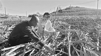 红娘与参与相亲的嘉宾在玉米地里一边干活一边攀谈。受访者供图