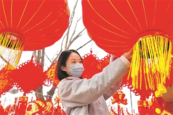 1月29日,顾客在河北省邢台市南和区和阳镇集市购买节庆饰品。春节临近,各地居民选购春联、福字、灯笼等节庆饰品,并组织各类文化活动,红红火火迎接新春佳节。新华社发(张驰 摄)