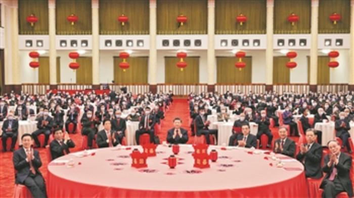 1月30日,中共中央、国务院在北京人民大会堂举行2022年春节团拜会。党和国家领导人习近平、李克强、栗战书、汪洋、王沪宁、赵乐际、韩正、王岐山等同首都各界人士欢聚一堂,共迎新春。新华社记者 黄敬文 摄