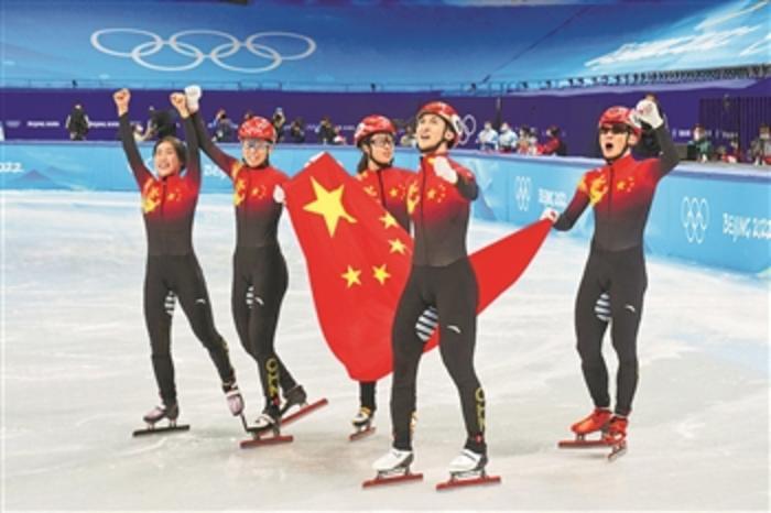 2月5日,在北京2022年冬奥会短道速滑项目混合团体接力决赛中,中国队夺得冠军。这是中国代表团在本届冬奥会上获得的首枚金牌。