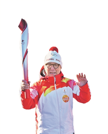 图为2月2日,第一棒火炬手罗致焕在火炬传递中。新华社记者 陈钟昊 摄