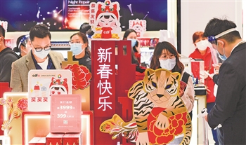 2月3日,游客在位于海南省海口市的中免集团海口日月广场免税店选购免税品。