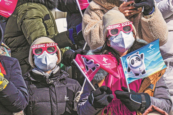 ② 2月7日,张家口崇礼赛区,天气晴朗,观众正戴着墨镜观看比赛。