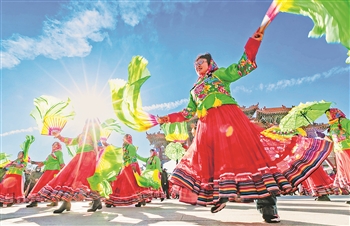 当日,“第十五届塞上老街非遗庙会暨敕勒川元宵节花灯音乐季”在呼和浩特市玉泉区启幕。乌兰牧骑惠民演出、传统社火展演、文创非遗展示及非遗美食品鉴等活动集中亮相,吸引了众多游客观赏游玩,欢庆新春佳节。此次非遗庙会将持续至正月十五。丁根厚 摄
